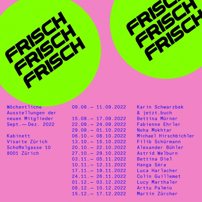 Gruppenausstellung im Seebad Utoquai vom 6. - 14. November 2021. Mit Astrid Amadeo, Daniel Bosshard, Verena Bühler, Alexandra Carambellas, Maria Eitle-Vozar, Chiara Fiorini, Eva Gallizzi, Barbora Gerny, Linda Giupponi, Bénédicte Gross, Susi Hochstrasser, Vivi Linnemann, Mara Mars, Ursula Niemand, Krista Pfister Kron, Ursula Schertenleib, Peter Schneebeli, Katrin Severin, Marlis Spielmann, Marion Strunk, Morné Swanepoel, Renate Thüler, Susanna Vecellio, Cynthia Waser, Martin Zürcher, Alex Zwalen u.a.
