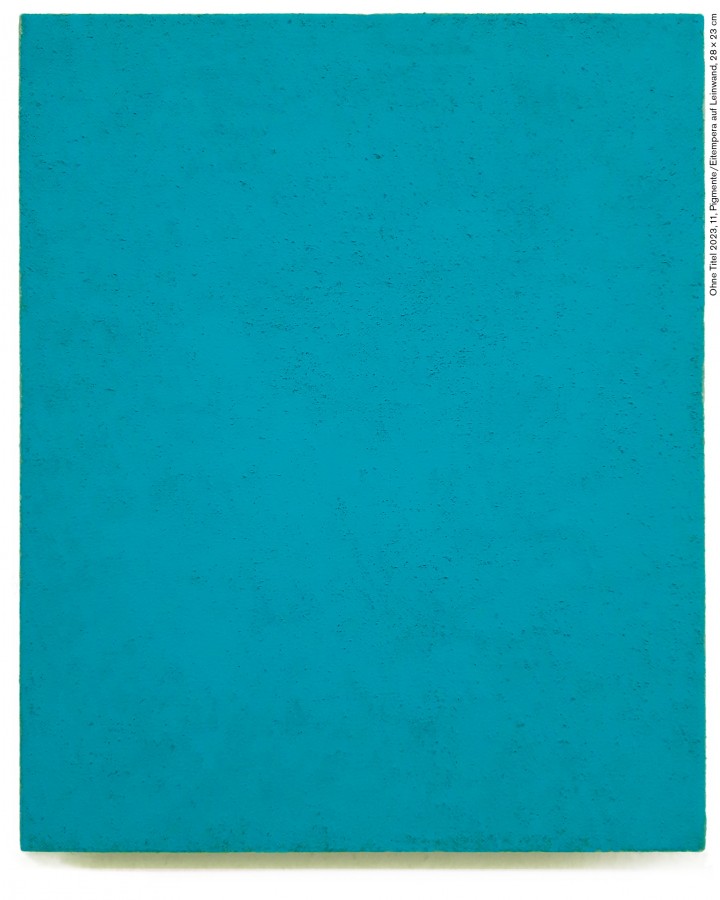 Mein Blick fällt in die Farbe. Farbmischungen, Ausreizen der Farbe, Farbbrechungen und Übermalungen mit Pigmenten, gebunden in Eitempera und in Leinöl, formulieren das Geschehen auf der Fläche. Das Gestische, das Drama, tritt während des Malprozesses mehr und mehr zurück. Licht und Farbe bilden Schicht für Schicht das Malereiereignis auf Leinwand.»