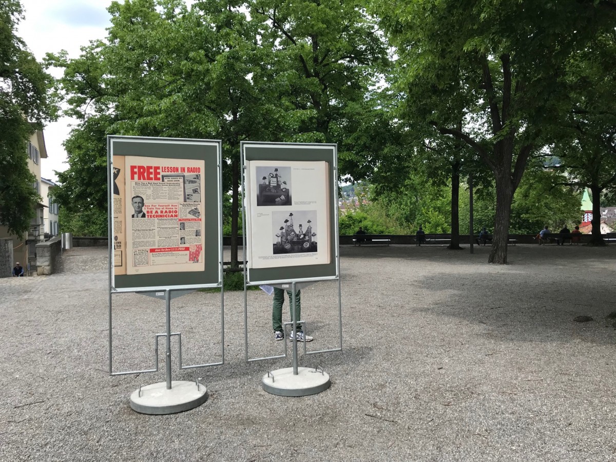 Zwölf Plakatständer mit Betonfuss sind paarweise zwischen den Bäumen auf dem Lindenhof angeordnet und zeigen beidseitig aufgezogene Motive aus der Serie Repro (seit 2018) von Matthias Gabi. Die Presseerzeugnissen, Lexika, Kunstkatalogen oder Produktebroschüren entnommenen Vorlagen sind Bild-Text-Kombinationen, die der Künstler fotografisch reproduziert hat. Für die Gasträume 2019 hat er Repro um neue Sujets erweitert. Die wechselvolle Geschichte des schattigen Lindenhofs geht bis zu den Kelten zurück. Heute ist die älteste öffentliche Grünanlage von Zürich bei Touristen als Aussichtspunkt ebenso beliebt wie bei den Bewohner_innen der Stadt, die sich zum Pétanque- und Schachspielen treffen oder kurz verweilen. Im Gegensatz zur Präsentation im Ausstellungsraum sind die Bilder aus Repro hier frei und lose zwischen den zahlreichen Linden platziert. Mit den Plakatständern sind sie auf einem Trägermedium angebracht, das eigentlich einem kommerziellen Zweck dient und hier die vertikale Struktur der über 50 Bäume formal aufnimmt. Die paarweise Anordnung ist an das Prinzip der Doppelprojektion angelehnt, die vom Kunsthistoriker Heinrich Wölfflin (1864–1945) ausgehend die Praxis der Wissensvermittlung in der Kunstgeschichte bis heute prägt. Auf dem Lindenhof interagieren die Sujets mit neuen und alten Nachbarn. Auf formaler und inhaltlicher Ebene lassen sich Kontraste, Verbindungen oder Entsprechungen ausmachen, denen ein Potential für neue Narrative innewohnt. Die Motive als statische Kondensate laden die Besucher_innen des Lindenhof zu einem zweiten Blick ein, aber auch dazu, durch diesen «Bilderwald» hindurch zu wandeln und sich auf visuelle Um- und Abwege einzulassen. Durch den Transfer von reproduzierten Gebrauchsfotografien über Archivfotografie auf Plakate im öffentlichen Raum wird der Zweck, Absender und ursprüngliche Kontext der Motive uneindeutig. Repro ist eine Setzung, die subtile Irritation schafft.