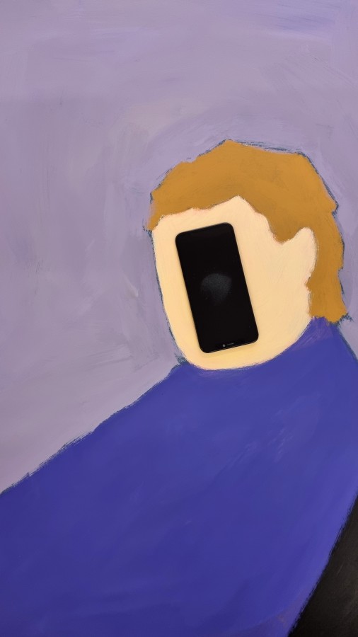 Zwischen diesen Fragen entfaltet sich ein Dialog der beiden Künstlerinnen: Amina Giger malt Figuren und Gesichter, die nur angedeutet bleiben und deren Blicke anonym und unbestimmt wirken. Marilin Brun hat für die ausgestellten Objekte Pigmentflecken auf ihrer Haut abgezeichnet und mittels Spray auf Smartphone- und iPad-Displays übertragen. In beiden Arbeiten eröffnet sich ein Spannungsfeld zwischen Intimität und Distanz.*