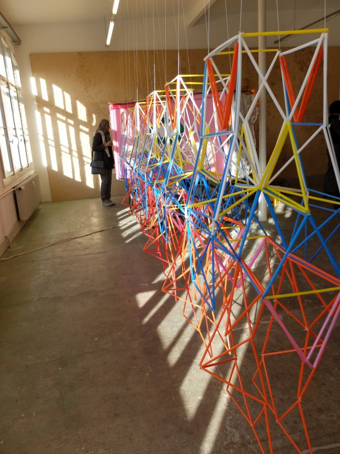 Die Künstlerinnen Antschi von Moos, Detel Aurand und Eva Stürmlin reisten zwischen 2009 und 2012 in die indische Stadt Varanasi. Das mühelose Nebeneinander von Gegensätzen wie dem Profanen und Sakralen, dem Toten, Kranken und dem Lebendigen dieses Ortes erzeugte eine vibrierende Vitalität und inspirierte sie zu gemeinsamen Aktionen vor Ort. Die Ausstellung "Many Air Today" vereint zeichnerische Positionen auf kleinem Papier und großer Wand. Filmische Projektionen, raumfüllende Installationen, Hände und Zeichenstift lassen den Betrachter das bewegte Licht als Projektion und Refelxion wahrnehmen. In einer gemeinsamen Installation „Hand Made“ nehmen die Künstlerinnen ausserdem die Tradition - Kuhfladen an die Hauswand zu befestigen - als Ausgangspunkt für Überle-gungen zu den verschiedenen Vorstellungen von Zeit, Gleichzeitigkeiten und Zeitabfolgen.