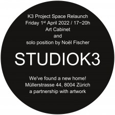 Der von Sandi Paucic und Clare Goodwin betriebene «StudioK3 Project Space» hat an der Müllerstrasse 44 in 8004 Zürich ein neues Zuhause gefunden! Eröffnung ist am Freitag, 1. April, von 17-20h, sowie am Samstag, 2. April von 14-17h. Für mehr Infos klick hier.